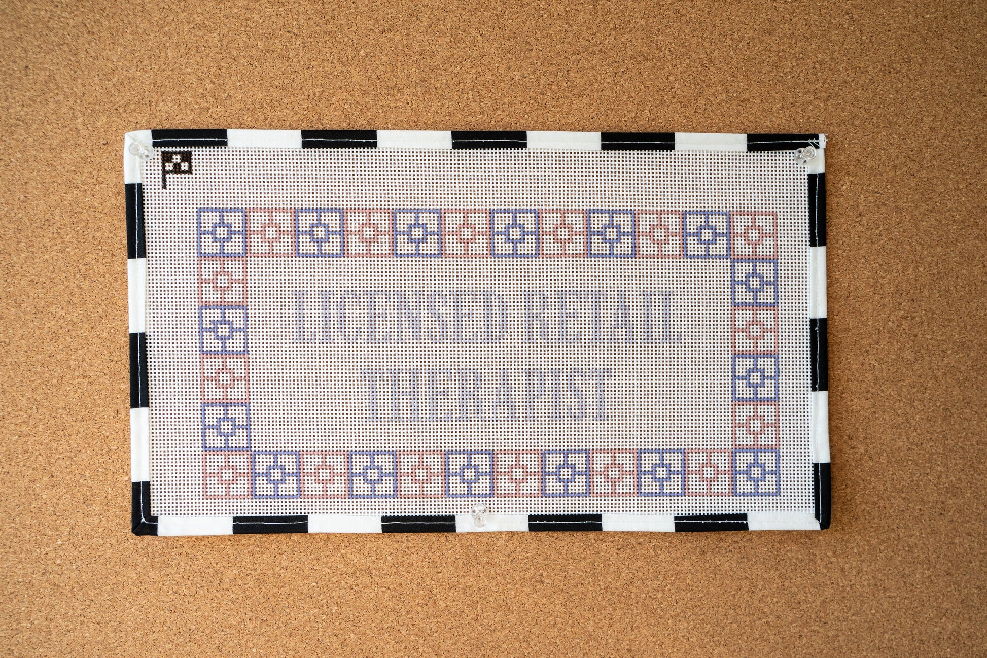 Stitch painted on 13 mesh Zweigart canvas and edge bound with our signature checkered flag fabric